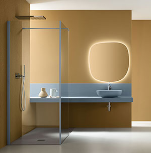 Splash of color – la salle de bains colorée laisse libre cours à la créativité. Un mélange de couleurs claires et foncées dans des motifs saisissants créent un ensemble ludique. Les couleurs douces et chaudes occupent une place centrale : l’aspect ensoleillé de l’abricot ou naturel du vert sauge. Les exemples sont nombreux dans l’assortiment Van Marcke: Arblu Pietrablu, Detremmerie No Limit, Zucchetti Pan S et Van Marcke Ventus.