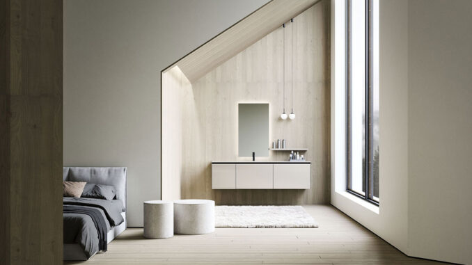 Out of this world – la salle de bains moderne – fait référence à ce que nous extrayons du sol, à savoir les minéraux, les roches, … La palette de couleurs va du gris et du beige au ciment et granit. En termes d’éléments – pour le mobilier – cela se traduit par des tons gris doux, des textures, des formes ovales et des robinets arrondis.