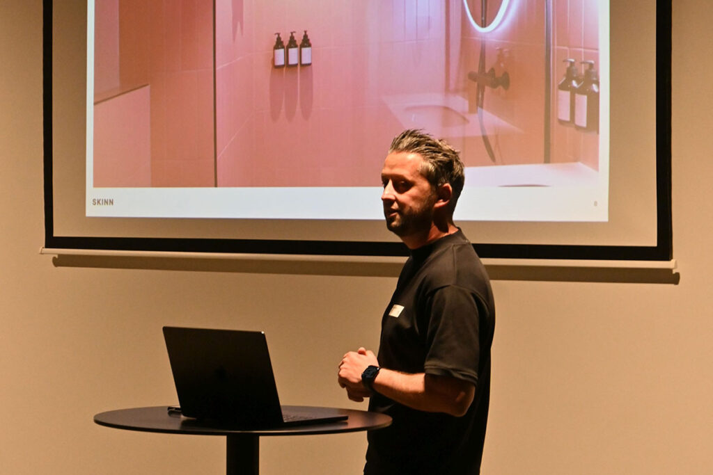 Le conférencier principal était Olivier Caluwier, Head of Spaces chez Skinn, l’agence de branding qui étudie l’impact des marques sur chacun d’entre nous. « Nous visons la combinaison parfaite entre une approche stratégique de la créativité, d’une part, et la valorisation de l’impact des marques, d’autre part », déclare le lauréat du Best Design Hotel Award 2024. « Quand une chambre d’hôtel devient-elle plus qu’un simple endroit pour dormir ? Le design hôtelier fait la différence en tant qu’outil stratégique pour fidéliser les clients et leur offrir une expérience inoubliable, qu’ils souhaitent ensuite partager avec autrui et le monde entier. Outre la circularité et la durabilité, la personnalisation et l’ancrage local sont les principales tendances. Les boutiques-hôtels ou les chaînes hôtelières des grandes villes fonctionnent également selon ce modèle économique, mais toujours avec une touche locale. La technologie moderne est à l’origine des tendances. Les clients veulent réserver sans contact mais ils apprécient le contact humain. Un exemple : il n’y a pas de carte de menu dans la chambre mais une question personnelle sur leurs envies. Des études montrent que 78% des clients choisissent leur hôtel en fonction du design. Les hôteliers constatent une augmentation de 20% des réservations répétées quand les clients apprécient le design et le concept. »
