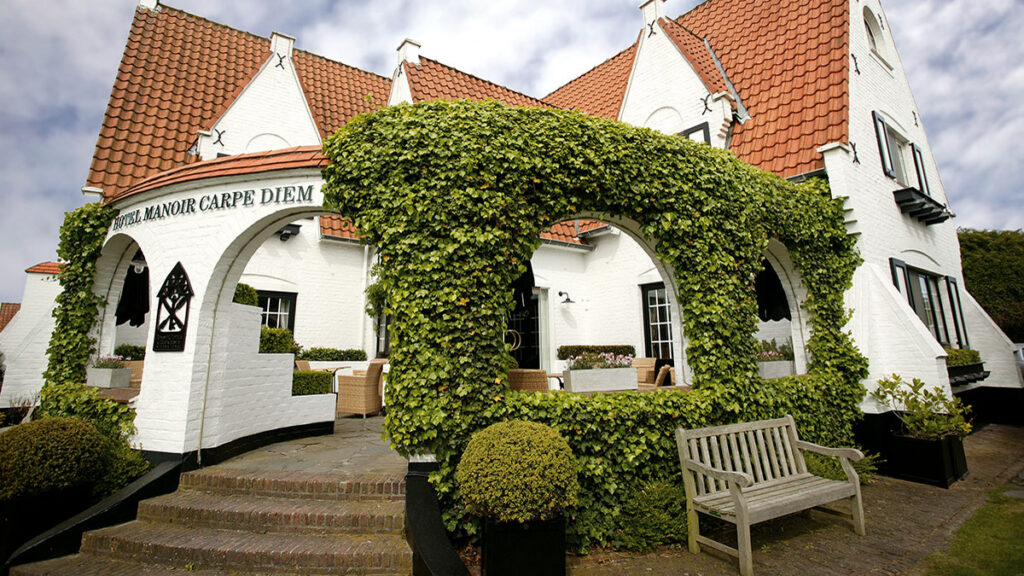 Petit hôtel de charme, le Manoir Carpe Diem est au cœur du Concessiewijk à De Haan, qui compte plusieurs villas datant de la fin des années ’20. L’établissement trône sur la deuxième plus haute dune de la commune. Les propriétaires, Patrick Deryckere et son épouse Claudine Pattyn, ont acquis la propriété il y a deux décennies et rénové la villa et sa remarquable façade en demi-cercle. Les 17 chambres et suites sont toutes décorées et aménagées différemment. Le jeu des couleurs et de la lumière confère aux chambres un charme unique. Les espaces communs – la salle de petit-déjeuner, le coin salon confortable et le bar – affichent un intérieur élégant de maison de caractère, à la fois luxueux et raffiné. »